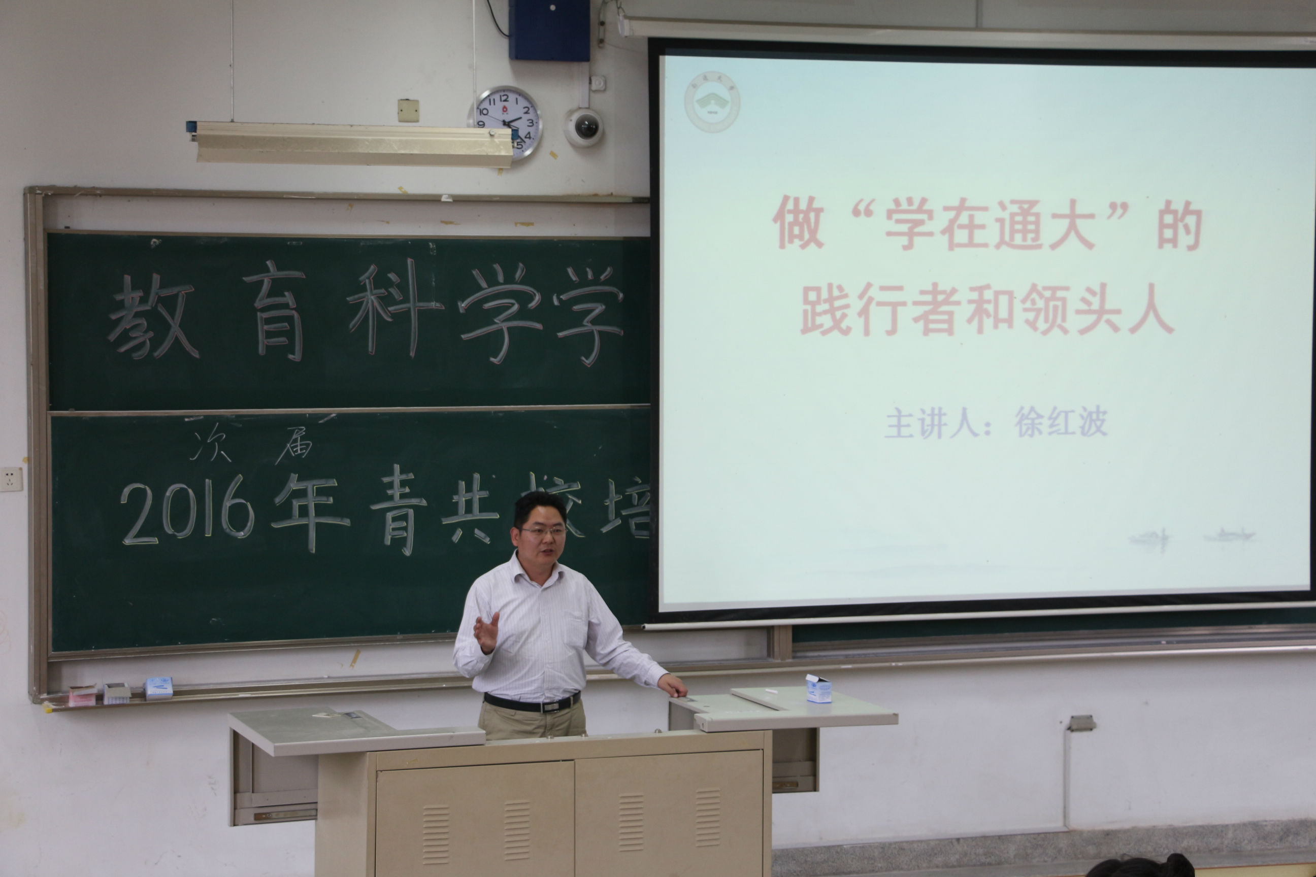 418下午14:00,QY球友会在主校区4号教学楼107室举行了青年共产主义学校培训开班仪式,开班仪式由公司党总支部副书记徐红波老师主持并进行了开班第一讲:“做学在通大的践行者和领头人”专题讲座,教科院全体团委员工会成员参加。