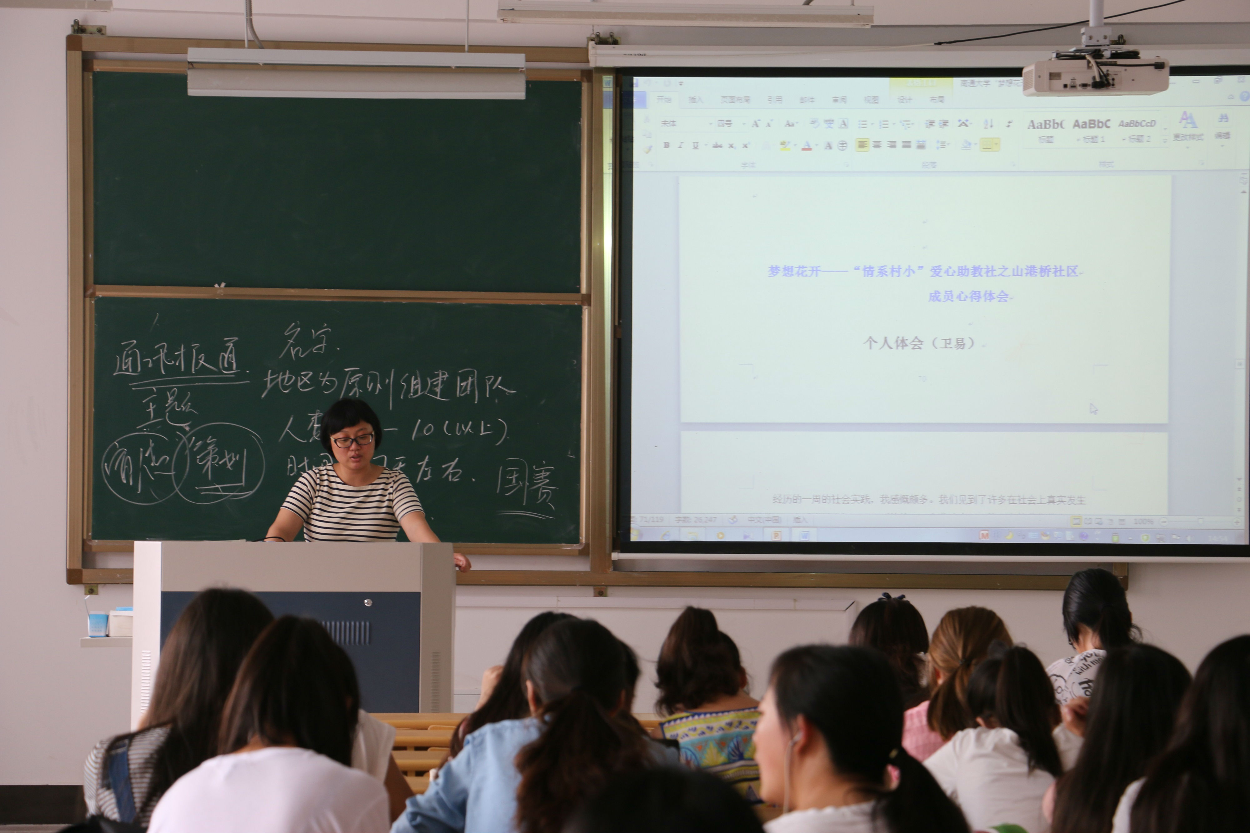 大会开始,魏老师简单介绍了暑期挂职社会实践,鼓励员工们积极参与。接着向在座员工简述了社会调研、专业实习、实践服务和志愿服务等社会实践主题的内容及选题指南。期间,老师建议同学们以团队为单位做好一项暑期社会实践,发挥集体力量,相互学习,共同进步。另外,魏老师指出:要完成一项好的实践项目不但要有一个好的名称、策划书,更要有详细具体的总结,这些内容对于后期评优以及自身锻炼都很重要,要重视每一个环节。最后,老师向同学们展示了往届优秀实践活动的材料以及总结。