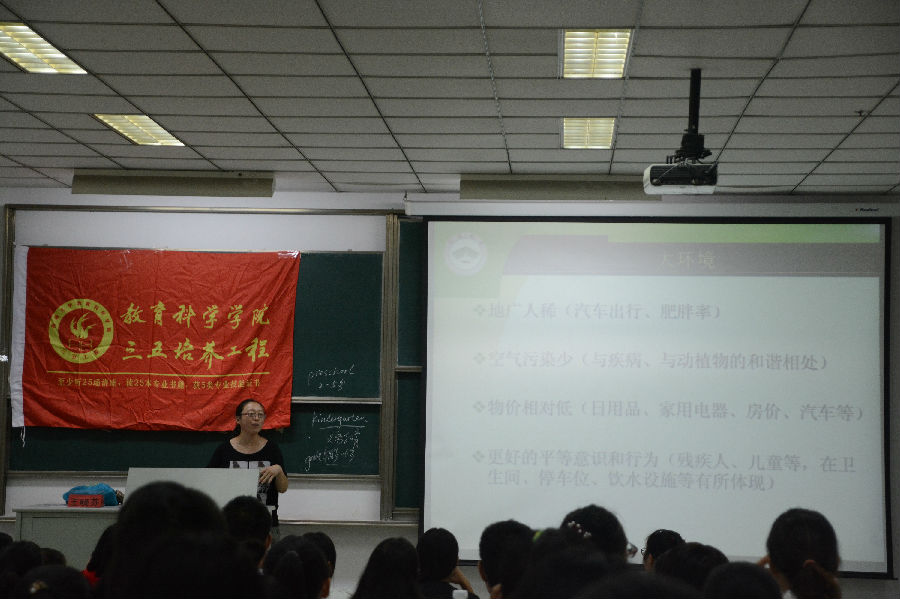 9月28日下午2点,由QY球友会组织的三五讲座在8号楼106教室成功举办。本次讲座主题为《美国幼教见闻》,由教科院学前教育系王晓芬老师主讲,120余名同学参加本次活动。