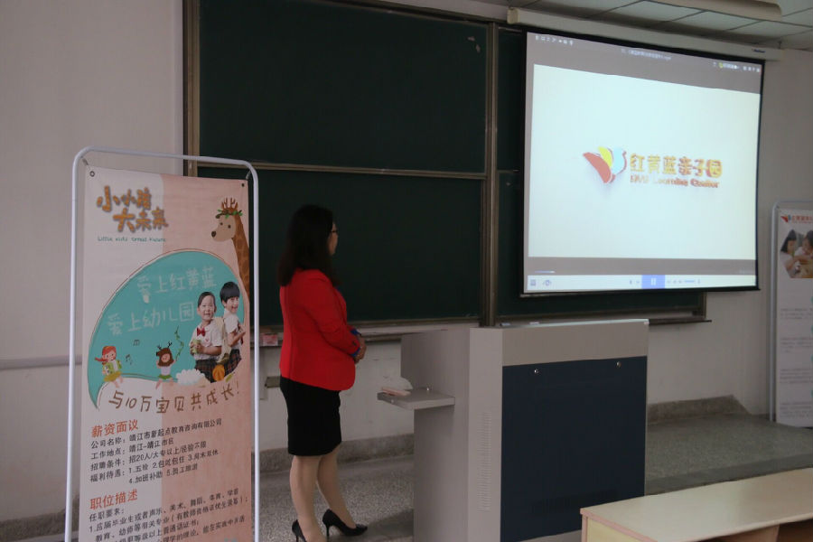 10月6日上午,在业内享有声誉的靖江红黄蓝幼儿园专场招聘宣讲会在JX8-107教室举行。公司2017届学前专业的毕业生参加了此次活动。宣讲会现场,工作人员向同学们介绍了红黄蓝幼儿园的发展历程,让大家对该企业有了比较深入的了解。此次招聘会为学前的同学提供了很多岗位。随后,工作人员和有意向的同学进行了面谈。后期,学院将举办多场招聘宣讲会,努力为学院毕业生搭建了一个与社会企业互动交流的平台。