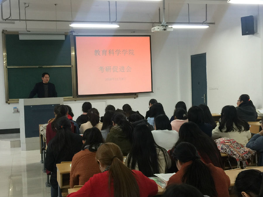 2016年11月8日下午14:00,QY球友会在18号教学楼417召开了考研促进会。党总支副书记徐红波、副经理沈永江、学工办主任陈淑慧以及报名参加2017年研究生入学考试的116名员工参加了此次会议。