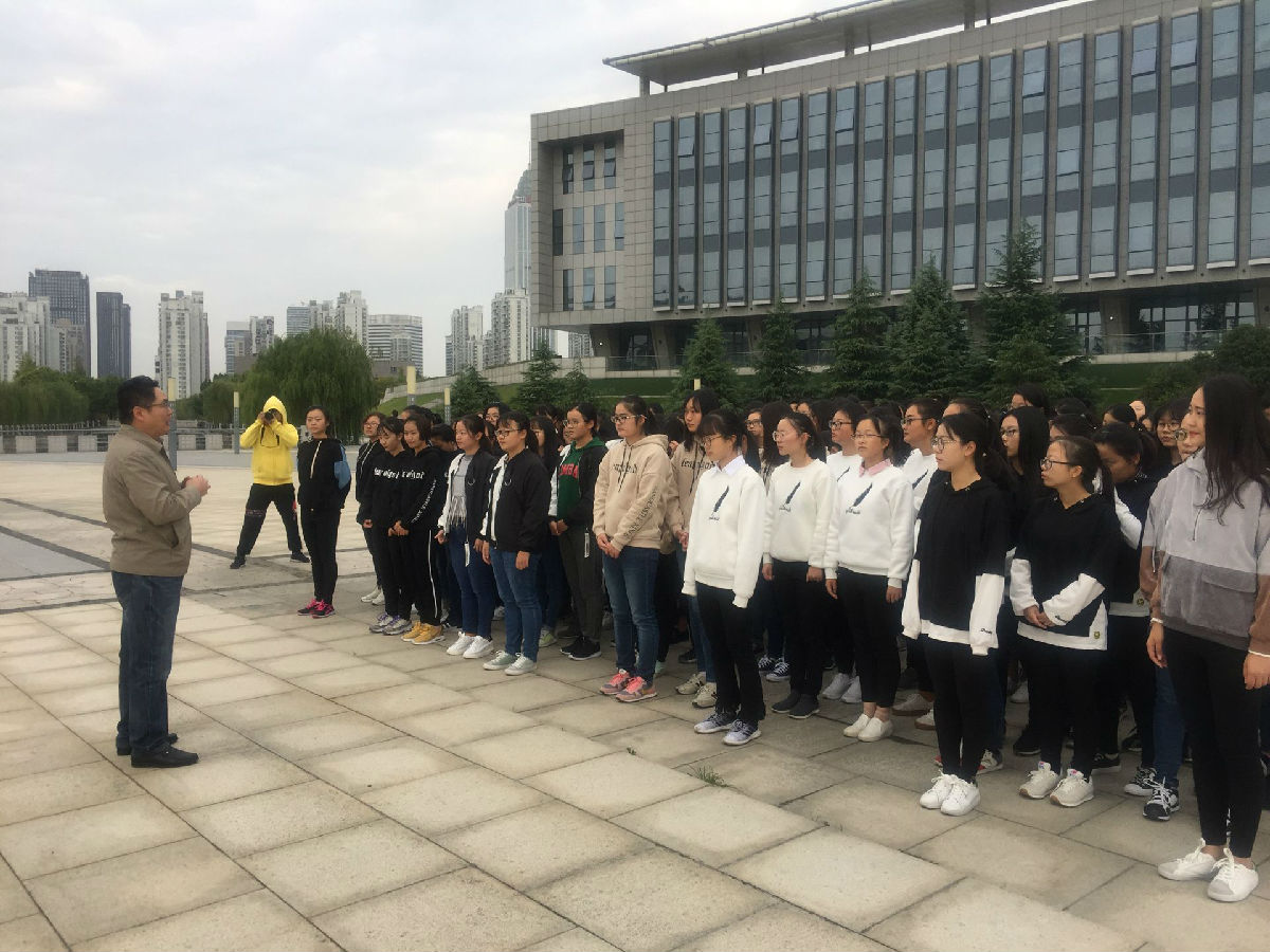 2017年10月10日清晨,QY球友会“四一工程”之晨舞在图书馆前拉开序幕,学院副书记徐红波老师给2017级全体员工做动员讲话。