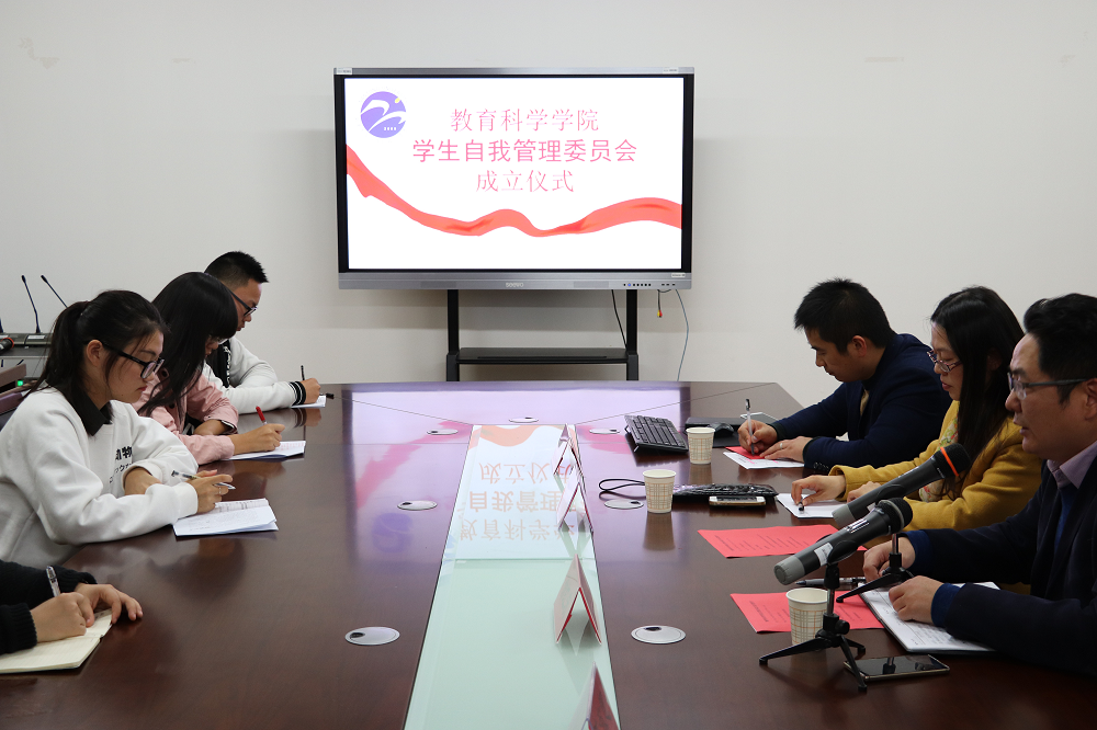 严军英老师感谢学院邀请她来参加自管会成立仪式大会,对员工提出了“三个坚持”,即坚持社会主义核心价值观、坚持全心全意为员工服务、坚持完善组织队伍建设,预祝教科院自管会越做越好。陈淑慧老师宣读了院自管会章程,展示自管会各项规章制度。赵敬龙老师就自管会内部机构设置,公布主席团、办公室、生活部以及宿舍管理部四个机构干部名单。新当选的院自管会主席钱思敏同学代表自管会全体成员作表态发言。