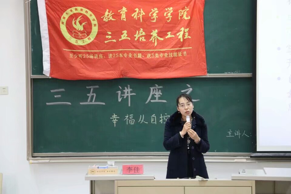讲座伊始,李佳老师强调拥有自控力是一个人获得成功的必备要素,以此引出了在思维、情绪、言语、行为、时间和钱财等方面自控的重要性与必要性。老师根据自己的经验以及学术上的钻研成果,耐心地对每个方面进行详细的分析。李老师将此次讲座核心精简为“内圣而外王”,与大家一起共勉。