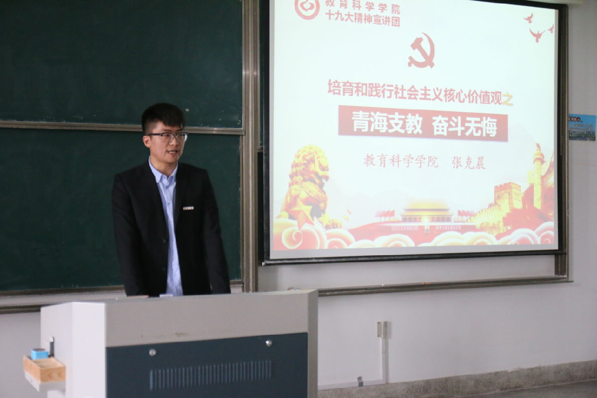 然后张克晨同学围绕“青海支教,奋斗无悔”的主题,与学员们分享了自己在青海支教的经历,也鼓励在场的学员们都能够积极投身偏远地区的教育事业。陈幸佳同学与学员们分享了自己艰难的求学之路、丰富的课余生活及积极向上的生活态度,她的坚强鼓舞着每一位学员。