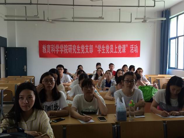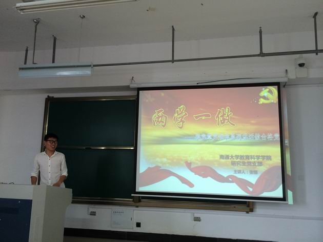 6月23日,学院研究生党支部在18号教学楼102教室举办员工党员上党课活动。研15教育张恒同学和研14教育卢倩同学围绕“两学一做”主题,分别为大家上了一节20分钟的微党课。研究生党支部书记蔡婧老师、研究生党支部全体员工党员和入党积极分子参加本次活动。