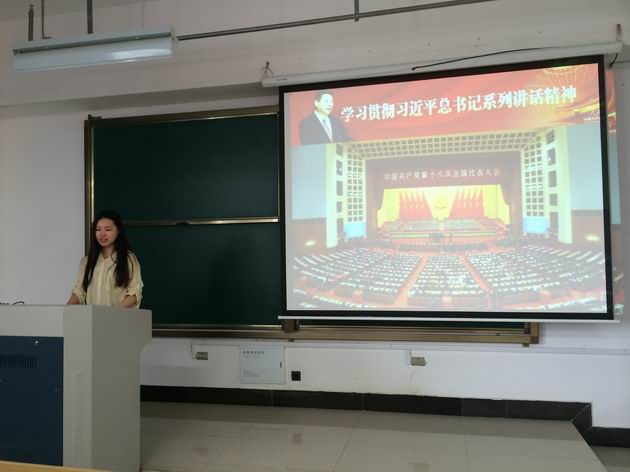 卢倩同学则从“学习贯彻习近平总书记系列讲话精神”着手,与我们分析了为何学、学什么、怎样学。卢倩同学还带领在座同学梳理了《习近平总书记系列重要讲话读本》,将其总结为四个关键词“旗帜”、“道路”、“动力”与“核心”,帮助大家梳理和凝练了习近平总书记的系列讲话精神。