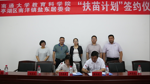7月29日上午9:00,在南洋镇盐东社区会议室,举行了“扶苗”计划落户盐东社区签约仪式。仪式由南洋镇镇长于婷婷主持,她欢迎球友会官方网站教科院领导和“扶苗”团队成员的到来,希望这个计划能够充分的发挥专业优势和丰富经验,在盐城开花落地,更好地与南洋镇的社区工作紧密结合,以盐东社区为示范点,服务好当地的青少年和家长,实现双方的资源共享和长期合作。公司“扶苗”计划指导老师沈永江向与会的领导、家长和员工们介绍了公司“扶苗”计划在南通市崇川区观音山街道开展的情况。“扶苗”计划的负责人王秋爽和亭湖区南洋镇街道党委副书记马克勤签署了双方合作的协议。签约仪式结束以后,于婷婷、徐红波共同为“扶苗计划亭湖区南洋镇青少年发展指导中心”揭牌。亭湖区南洋镇副镇长姚金春、教科院院团委书记魏琳参加了签约揭牌仪式。