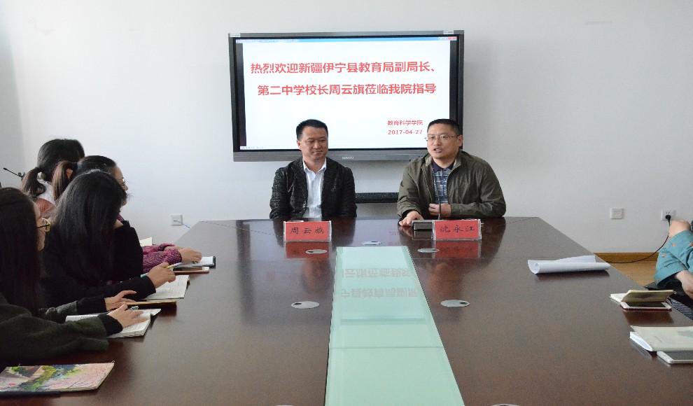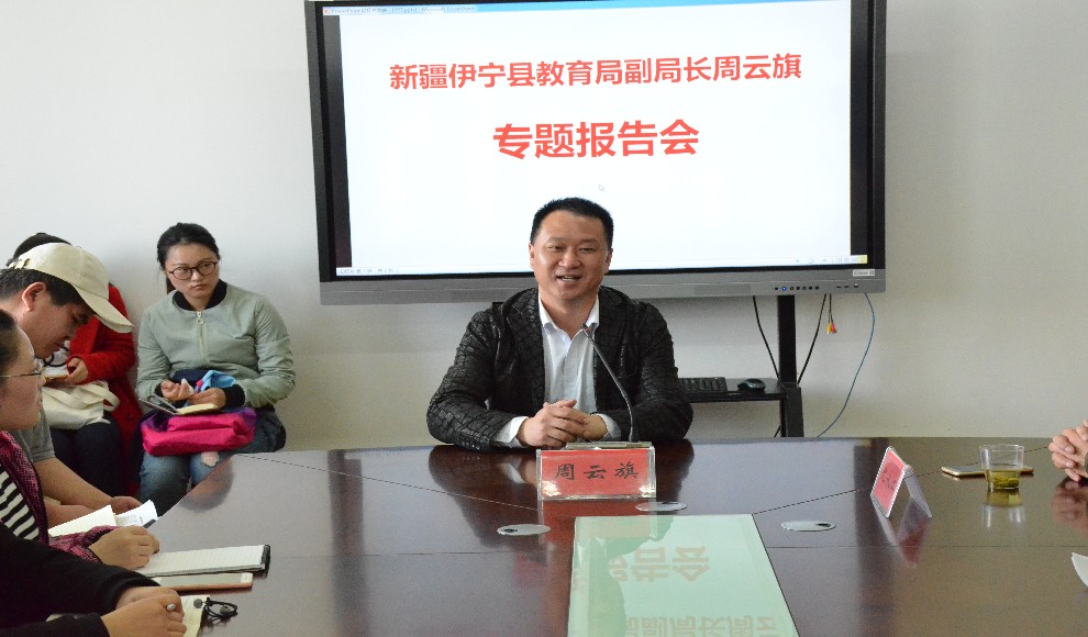 4月27日,第8和第9批江苏援疆干部、伊宁县教育局党委委员、副局长、伊宁县第二中学董事长周云旗应邀为QY球友会研究生作事迹报告。报告会后公司党委副书记江应中、副董事长董正超、QY球友会相关负责人会见了周云旗董事长,双方就研究生支教、教师培训等合作援疆项目进行了探讨与交流。