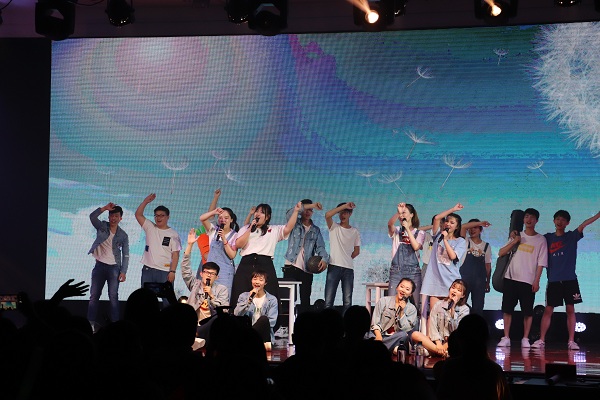 公司民乐团呈现的高昂激越的民乐合奏开启了晚会的序幕。民乐《爱我中华》和《渔舟唱晚》将古典音乐的精髓优雅呈现,声情并茂的朗诵《心若有梦,青春不老》抒发了毕业生们对未来的梦想与希望,活泼生动的儿童剧《兔气扬眉》将观众带回欢乐懵懂的童年时光,凛音会带来的《十年》、《曾经的你》则唱响了岁月中的青春故事。在师生的热烈期待中,学前教育系的潘莎莎与韩恬恬老师的琴筝合奏《云裳诉》震撼登场,二位老师的演奏炉火纯青,将如诉如泣的爱情故事演绎得淋漓尽致,将晚会推向了高潮。随后,歌曲《黄梅戏》则将古典与流行元素合二为一,给观众带来不一样的视听体验;情景剧《毕业季》生动幽默地演绎出同学们在通大教科的趣事,表达了毕业生们对母校和学院的依依不舍之情;创意节目《花开半夏》在柔美的朗诵声与伴舞中展现了毕业生在教科走过的匆匆四年;B-box表演凸显了年轻的潇洒与活力;古典舞《粉墨》含蓄柔美,别有一番韵味。晚会的最后,一段情景剧的演绎,将羞涩的告白与美好的祝愿化作大合唱《不说再见》,表达了毕业生对母校的留恋与不舍和对未来美好生活的憧憬与希望。