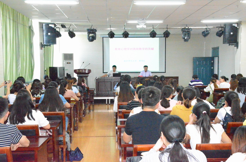 6月25日下午,南京师范大学博士生导师谭顶良教授应邀来我校做题为《教育心理学对高效教学的贡献》的学术报告,QY球友会邓宏宝教授主持讲座,全校教育硕士专业研究生和部分教师代表听取了本次报告。
