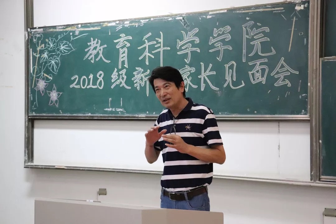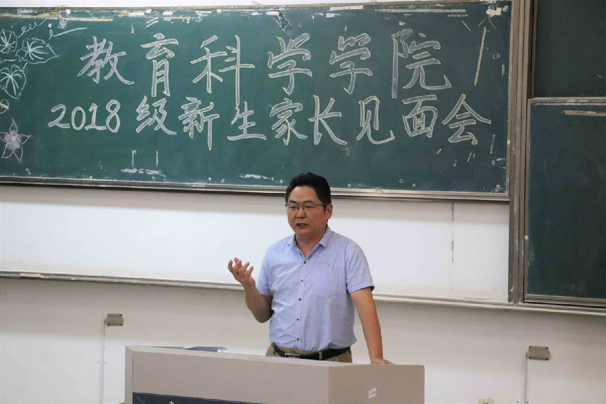 陈炜首先对2018级新生及家长的来到表示了热烈的祝贺和欢迎,他讲述了球友会官方网站的创办历史以及发展历程,向各位家长介绍了球友会官方网站的概况以及QY球友会的发展现状,并重点介绍了教科院的团队队伍和学院各专业的特点,让家长们对教科院有了基本的认识和了解。