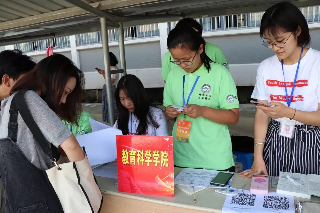 此次迎新工作,学校通过暑期的周密准备与安排,安装并调试今日校园APP,实现了新生报到的信息化,方便了广大新生的报道程序。在主校区15、17、18、26、31号宿舍楼大厅,2018级新生班主任、辅导员、来自教科院团委员工会的志愿者们在现场通过手机扫描二维码、领取宿舍钥匙,快速完成了新生报到。