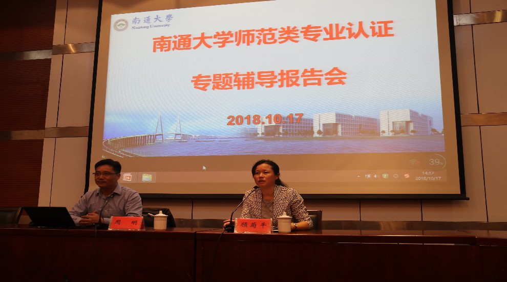 10月17日下午,江苏省教育评估院周明副经理应邀为公司师范专业认证作专题辅导报告。周经理从江苏师范专业认证的时代命题和责任、理念目的和原则、认证标准和实施办法,以及师范专业创建的重点内容和推进策略等四方面对师范专业认证进行了解读,并结合实例详尽地阐释了如何更好的对照认证标准填报好自评材料。通过周经理的辅导报告,各师范专业所在学院对师范专业认证的新思想、新标准有了更全面、更深入的认识。为公司参加全国师范专业认证工作打了下坚实的基础。报告会后,现场还进行了问答互动。各专业所在学院就填报认证材料过程中遇到的问题进行了提问和咨询,周经理一一详细作了解答。