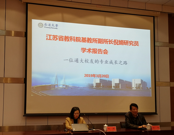 倪娟研究员深入浅出地向同学们讲述了自己求学、就业、成长的人生经历,分别从“一个人的起点很重要,但不是最重要;人的自我发展与专业发展都具有阶段性;简约专注,努力提升自我”三个方面分享了一位通大员工的专业成长之路,并提出作为乡村教师定向师范生要牢固树立“扎根乡村、服务乡村”的意识,要对教师这一崇高的职业充满热爱,要对自己充满自信,在成长的道路上多一些简单、少一些功利,潜心读书、追求卓越、不断挑战和提升自我。