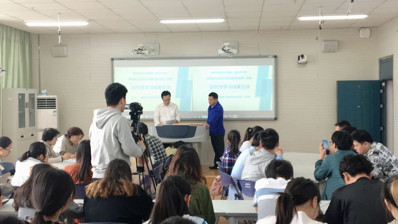 《教师职业道德与教育政策法规》课程基于在线教育平台,跟进员工身心发展规律和教师教育专业发展要求,以循序渐进教育基本原则为指导,坚持实践取向,情境浸润,立德树人,情能兼修。率先在国内同类院校中建设并进行了基于MOOC平台的《教师职业道德与教育政策法规》渐进式混合教学探索,该课程改变了过去从课堂到课堂、从课本到课本,以课堂讲授为主的授课方式,在教学方法方面不断改革创新,形成了以员工自主混合学习为中心,教师加强面授导学、网络学习、研究性学习三学引导“一主三学”的渐进式混合教学方式。今天许映建就是以本学期开课的数学师范161班和数学师范171(定向)班同学,进行的研究性学习成果展示交流为主题开设的一堂公开课。通过《教师职业道德与教育政策法规》课程学习,员工学习积极性主动性得到激发,研究性成果的展示,彰显出员工内在的创造性,课程得到广大师生、同行专家以及社会学习者的好评和认可。