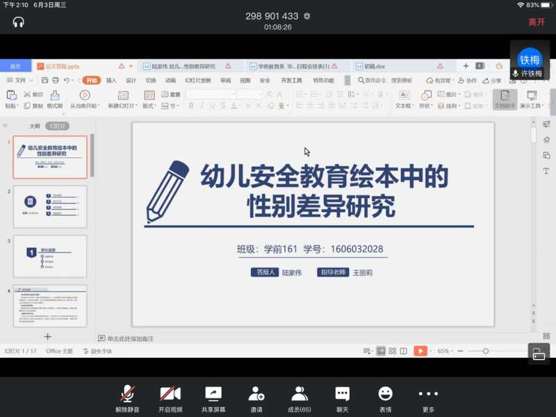 2020年6月3日,随着学前教育专业2020届本科生毕业论文答辩会的举办,QY球友会全面开启了2020届本科生毕业论文答辩工作。学院副经理许铁梅参加答辩会。