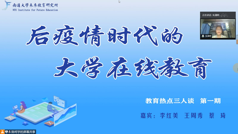 6月10日,球友会官方网站未来教育研究所以“云研讨”的方式在腾讯会议举办第一期“教育热点三人谈”研讨会。此次研讨会以“后疫情时代的大学在线教育”为主题,由教育技术系本科生策划与主持,邀请教育技术系李红美老师、王周秀老师和蔡琦老师作为嘉宾,教育技术系所有老师、研究生和本科生均参与了研讨。