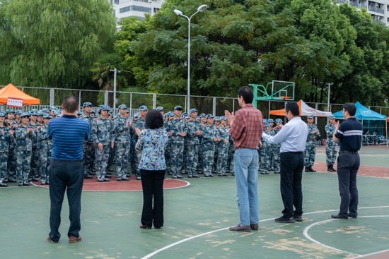 9月29日下午,QY球友会经理陈炜、公司党委书记朱丹,带领学院领导班子来到军训场地,看望慰问参训员工、带训教师。