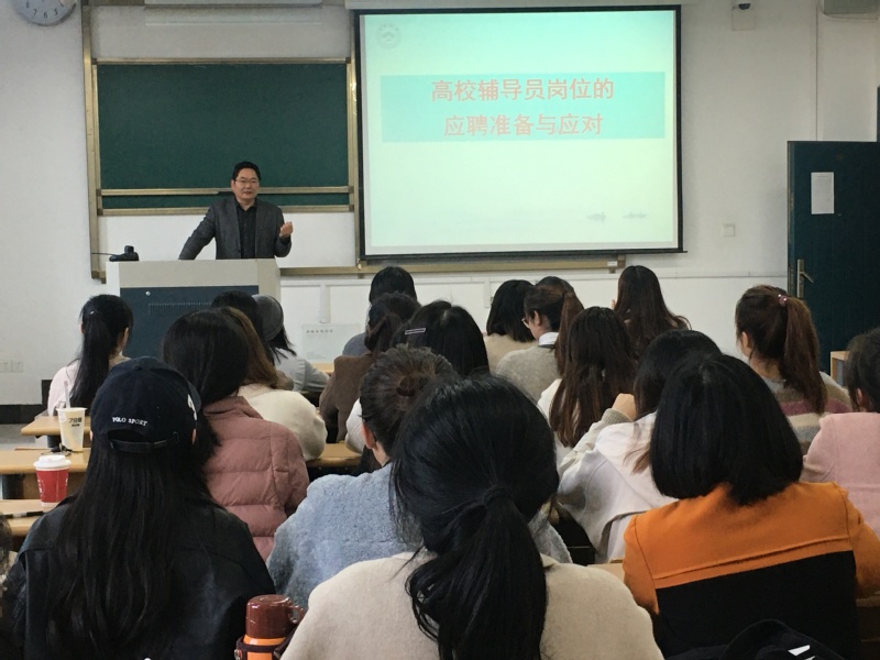 徐红波以高校辅导员应聘为专题,给毕业生们介绍了辅导员岗位的性质及其主要工作职责,强调辅导员是开展老员工思想政治教育的骨干力量,是高等学校员工日常思想政治教育和管理工作的组织者、实施者、指导者。他详细解读了高校辅导员招聘考试的题型,考试参考文件以及不同题型的应试技巧。讲座最后,徐红波向毕业生们传授了关于辅导员面试的经验,突出强调了在面试中出彩的方法是有逻辑地答题,体现出个体的爱心和人文关怀。