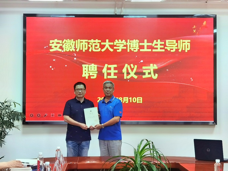 李宜江宣读了安徽师范大学博士生导师聘任文件,朱家存代表安徽师范大学向钱小龙教授颁发了博士生导师聘任证书。朱家存指出,博士生导师是博士生培养的第一责任人,要深刻认识导师所承担的人才培养职责和使命,希望钱小龙教授勤奋耕耘,砥砺奋进,成为潜心治学、全心教书、悉心育人的优秀导师。钱小龙教授作了表态发言,表示将立足博士生导师的使命和担当,潜心立德树人,锐意改革创新,为学校研究生教育发展贡献自己的一份力量。
