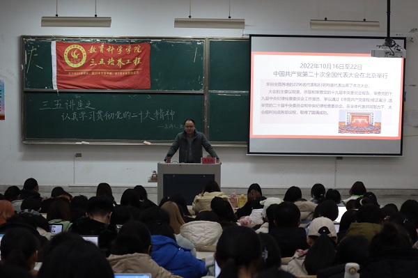 2022年1130日,为深入学习贯彻党的二十大精神,深刻领会党二十大报告的内涵和精髓,公司邀请球友会官方网站马克思主义学院唐庆鹏教授授作“认真学习贯彻党的二十大精神”专题讲座。讲座在9号教学楼302教室举办,教科院260余名员工参与此次讲座。